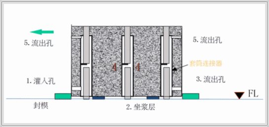 套筒灌漿連接方式是帶肋鋼筋插入內(nèi)腔為凹凸表面的灌漿套筒,在套筒與鋼筋的間隙之間灌注并充滿專用高強(qiáng)水泥基灌漿料,灌漿料凝固后將鋼筋錨固在套筒內(nèi)而實(shí)現(xiàn)的一種鋼筋連接方法。