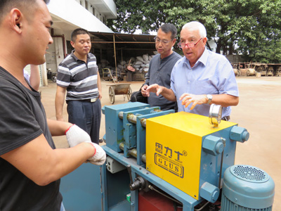我們首先陪同凱文一行參觀了我們的新工廠。該工廠采用了全新套筒加工工藝。保證套筒絲牙精度達(dá)到6H級(jí)。套筒內(nèi)徑、外徑、長(zhǎng)度等指標(biāo)也全部達(dá)到國(guó)家最新JG/T163-2013鋼筋連接套筒標(biāo)準(zhǔn)。是廣東省內(nèi)少數(shù)幾家能達(dá)到此標(biāo)準(zhǔn)的生產(chǎn)企業(yè)。其間,凱文和黎生拿起我們生產(chǎn)的直螺紋套筒,不時(shí)點(diǎn)點(diǎn)頭。用英語(yǔ)交流了起來(lái)。凱文是英國(guó)最早從事鋼筋套筒行業(yè)的少數(shù)人之一。其在英國(guó)推廣的鋼筋籠技術(shù)一直使用至今。到今天入行年限已超過(guò)40年。真可謂一生只做一件事的典范。其行事風(fēng)格極其嚴(yán)謹(jǐn),是最典型的英國(guó)技術(shù)人才。嚴(yán)謹(jǐn)、負(fù)責(zé)是其身上最突出的特點(diǎn)。而黎生作為我們較早合作的外商之一,精通四種語(yǔ)言,以其鮮明的國(guó)際化令我們十分欽佩。